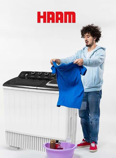 غسالة ملابس حوضين 18 كيلو هام – أبيض